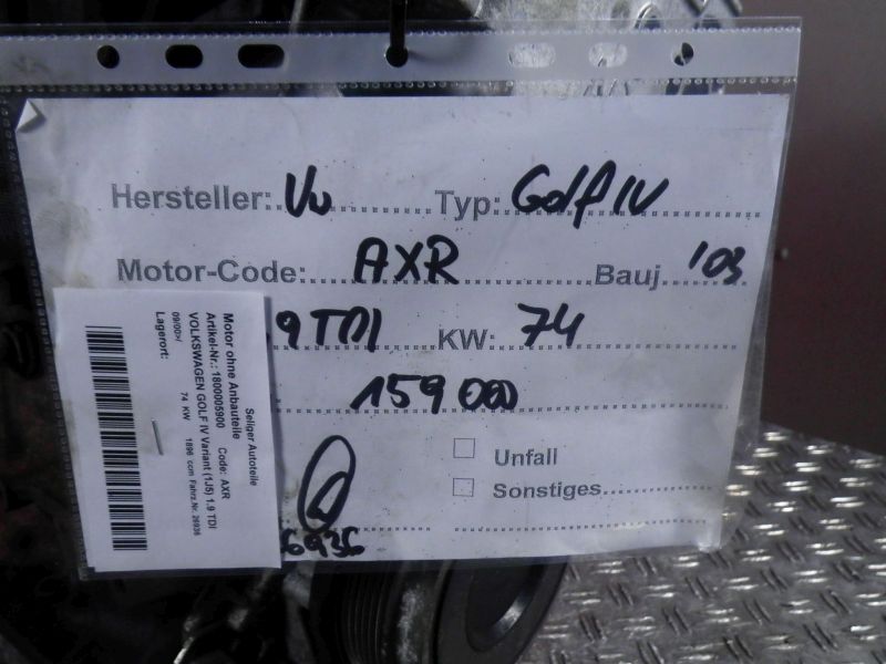 Motor ohne Anbauteile (Diesel) VOLKSWAGEN GOLF IV Variant (1J5) 1.9 TDI
