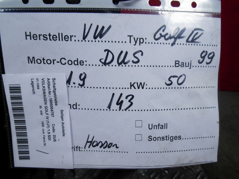 Schaltgetriebe VOLKSWAGEN GOLF IV (1J1) 1.9 SDI
