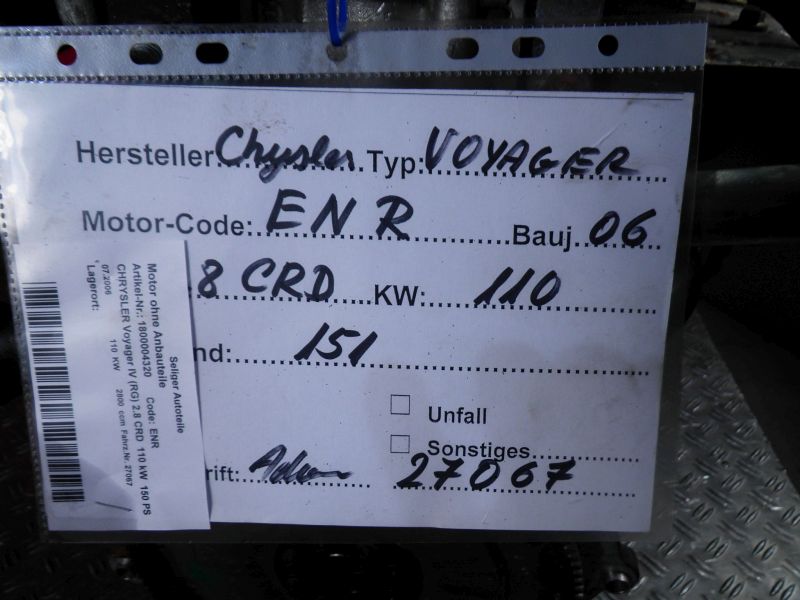Motor ohne Anbauteile (Diesel) CHRYSLER Voyager IV (RG) 2.8 CRD 110 kW 150 PS