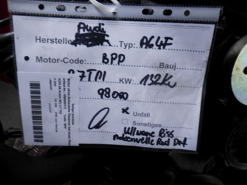 Motor ohne Anbauteile (Diesel) Ölwanne hat einen Riss, Nockenwelle defektAUDI A6, S6 4F