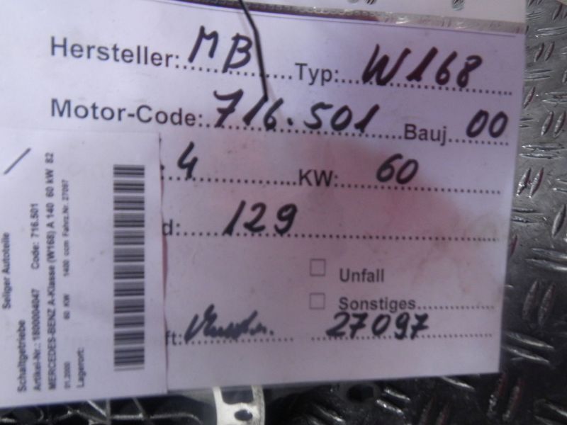 Schaltgetriebe MERCEDES-BENZ A-Klasse (W168) A 140 60 kW 82 PS (07.