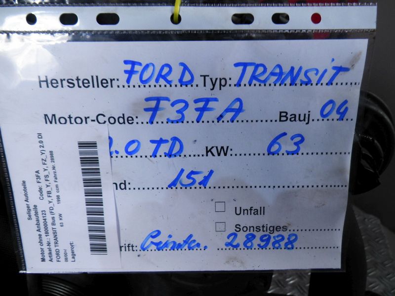 Motor ohne Anbauteile (Diesel) FORD TRANSIT Bus (FD_Y, FB_Y, FS_Y, FZ_Y) 2.0