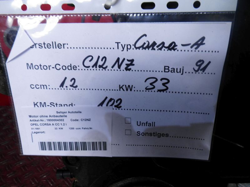Motor ohne Anbauteile (Benzin) OPEL CORSA A CC 1.2 i