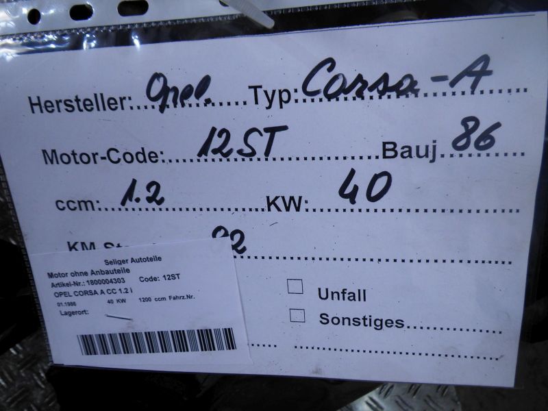 Motor ohne Anbauteile (Benzin) OPEL CORSA A CC 1.2 i