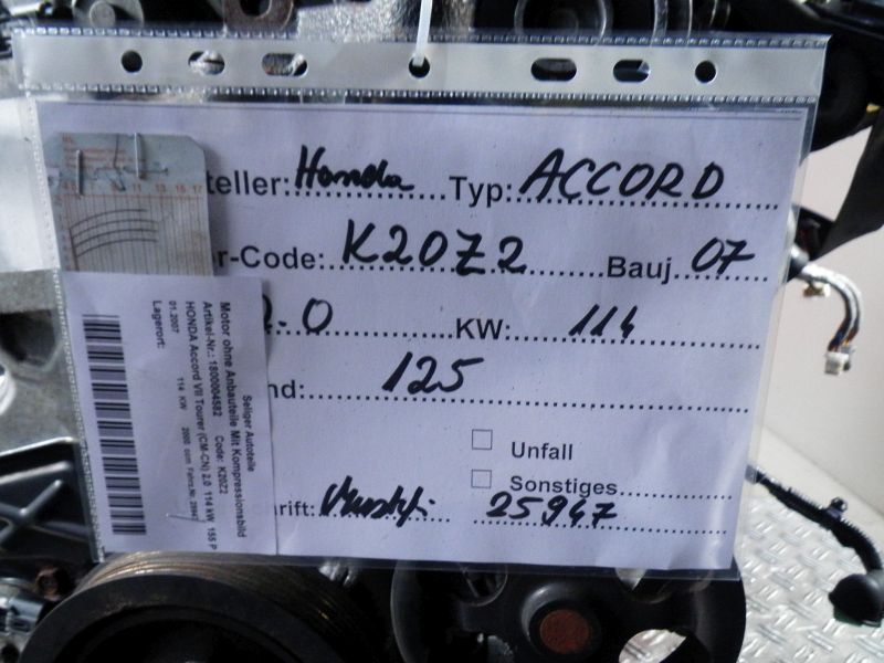 Motor ohne Anbauteile (Benzin) Mit KompressionsbildHONDA ACCORD VII TOURER (CM-CN) 2.0 114 KW 1