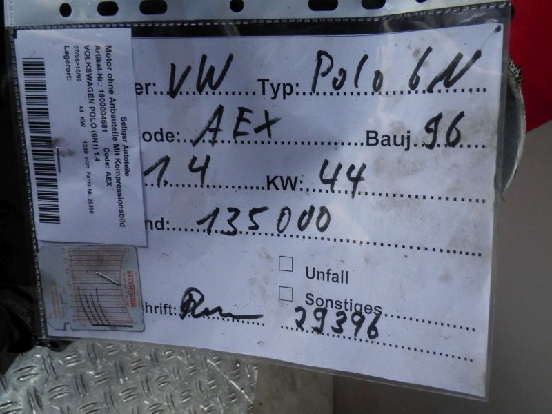 Motor ohne Anbauteile (Benzin) Mit KompressionsbildVOLKSWAGEN POLO (6N1) 1.4