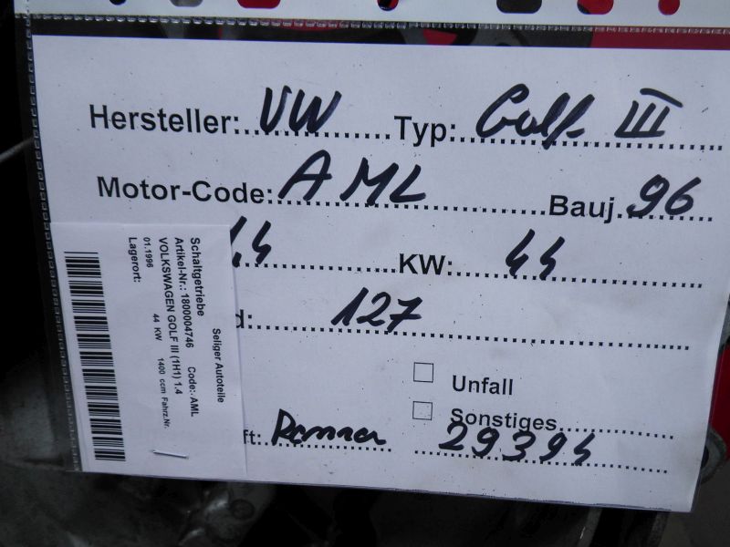 Schaltgetriebe VOLKSWAGEN GOLF III (1H1) 1.4