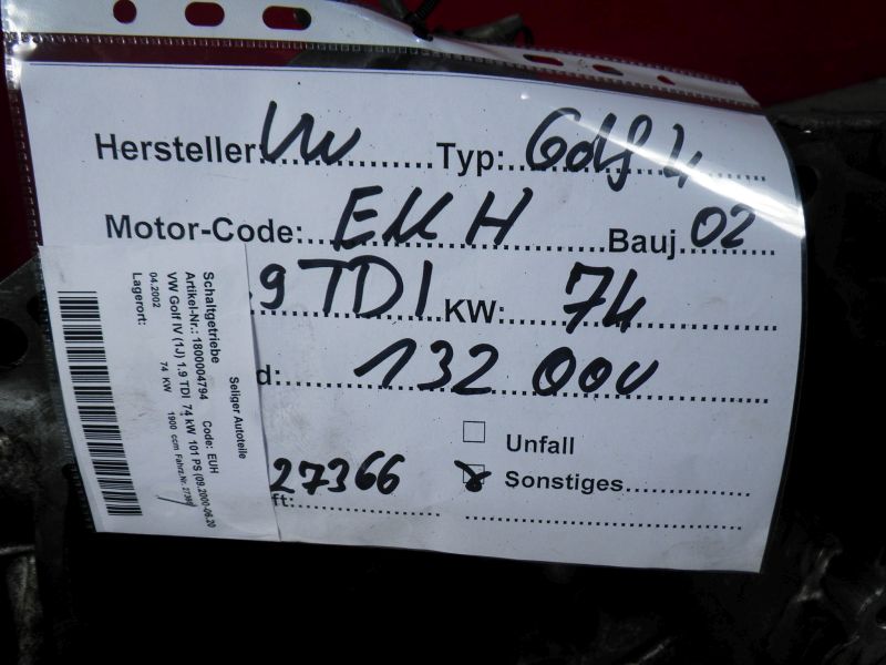 Schaltgetriebe VW Golf IV (1J) 1.9 TDI 74 kW 101 PS (09.