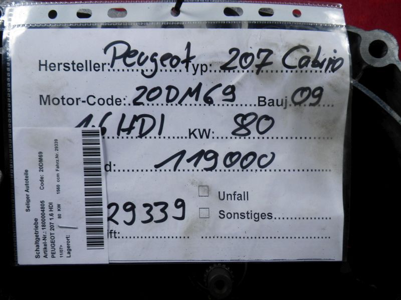 Schaltgetriebe PEUGEOT 207 1.6 HDI