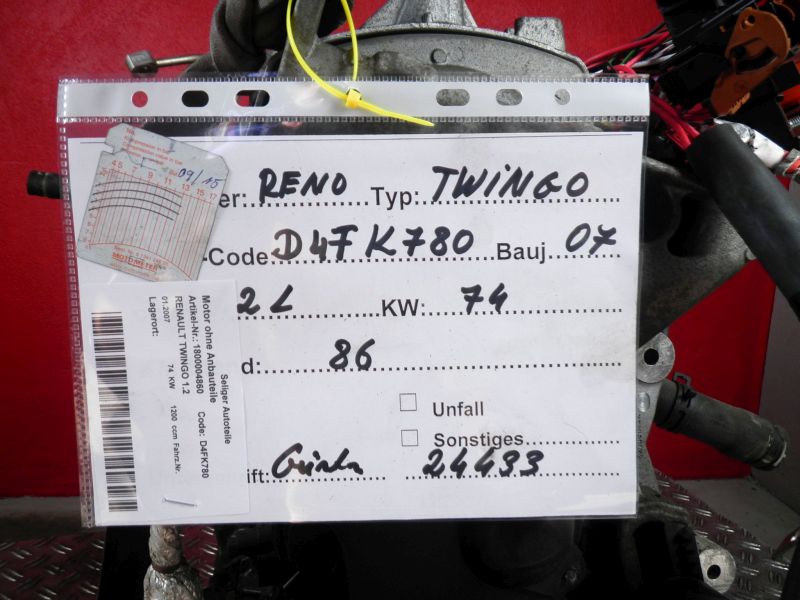 Motor ohne Anbauteile (Benzin) RENAULT TWINGO 1.2