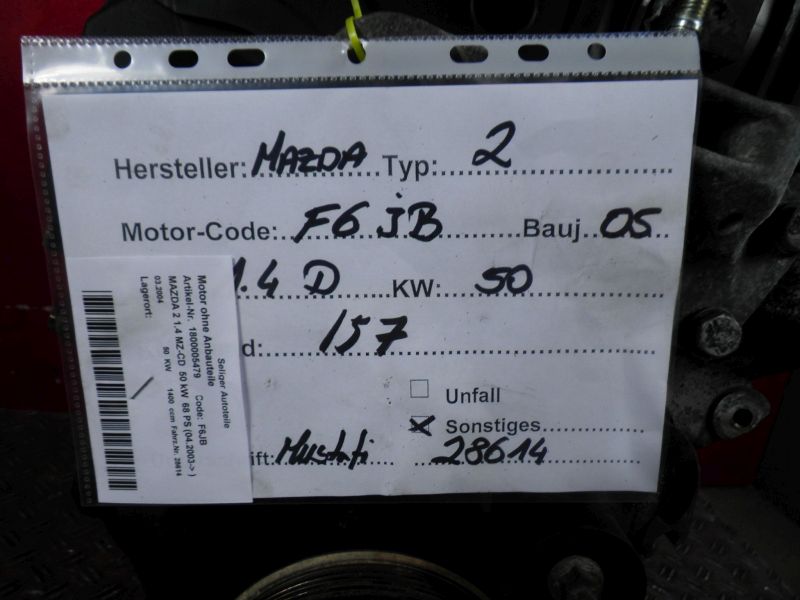 Motor ohne Anbauteile (Diesel) FORD FIESTA V (JH_) 1.4 TDCi