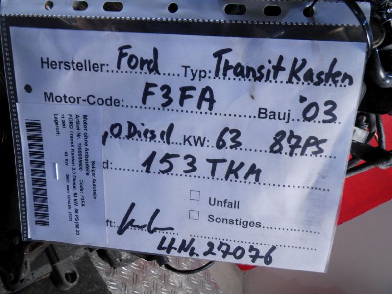 Motor ohne Anbauteile (Diesel) FORD Transit Kasten 2.0 Diesel 63 kW 86 PS
