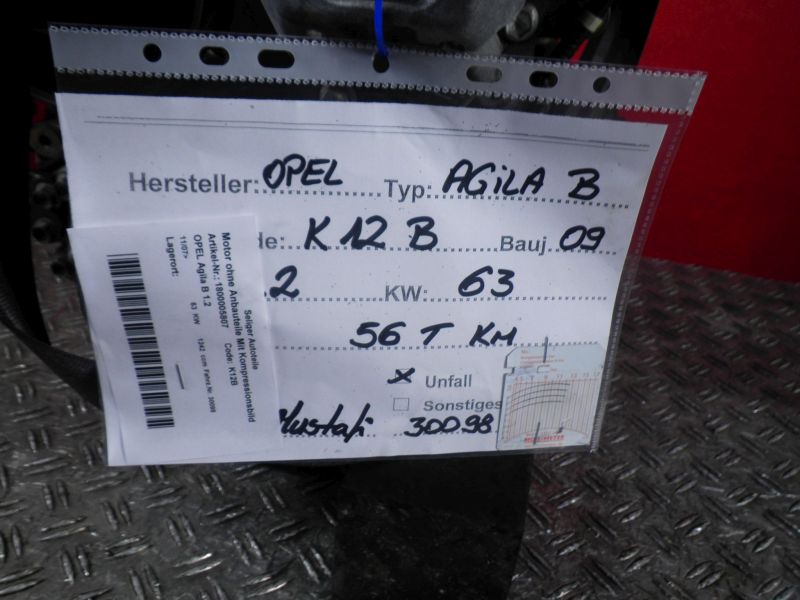 Motor ohne Anbauteile (Benzin) Mit KompressionsbildOPEL Agila B 1.2