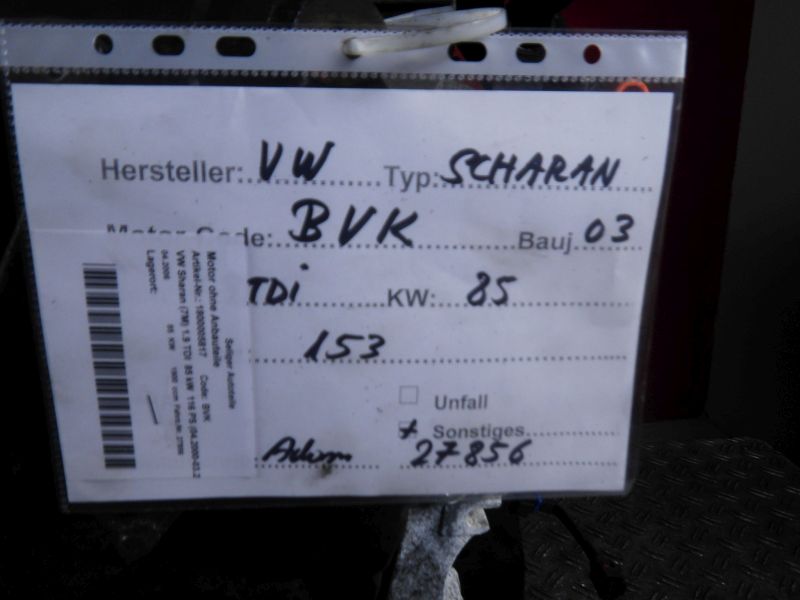 Motor ohne Anbauteile (Diesel) VW Sharan (7M) 1.9 TDI 85 kW 116 PS (04.2