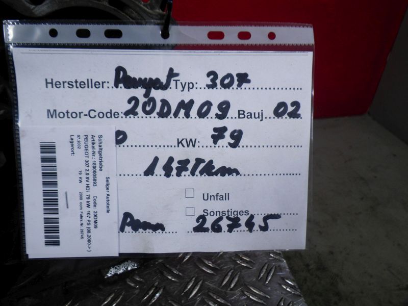 Schaltgetriebe PEUGEOT 307 2.0 8V HDi 79 kW 107 PS (08.2000->