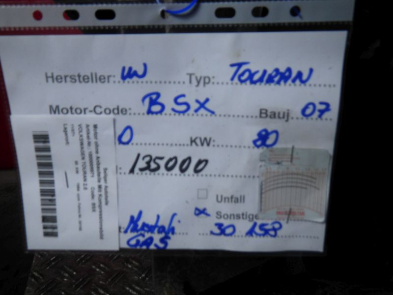 Motor ohne Anbauteile (Benzin) Mit KompressionsbildVOLKSWAGEN TOURAN 2.0