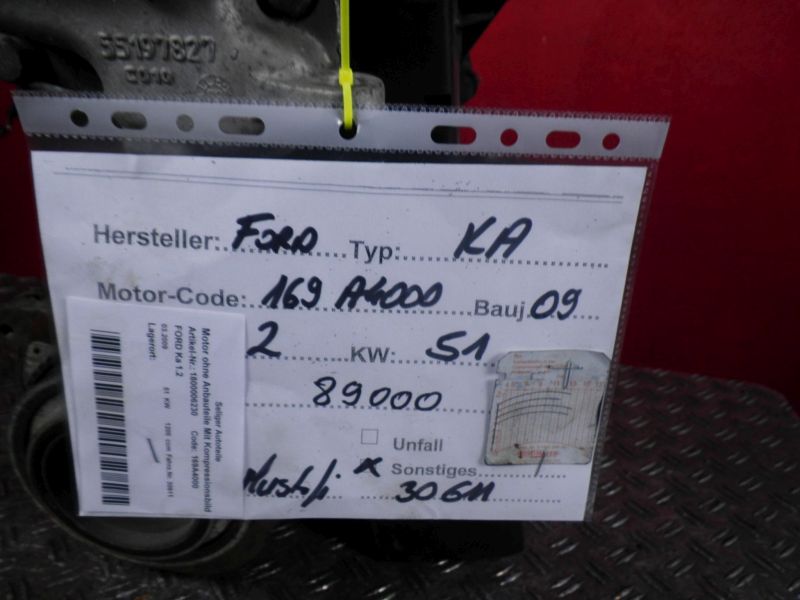 Motor ohne Anbauteile (Benzin) Mit KompressionsbildFORD Ka 1.2